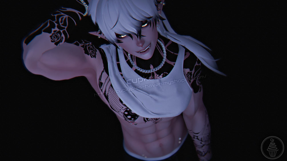 Assets made from scratch by me(Cupkake): Fox ears, Turtleneck top, Tiddy tank, Boxers, Socks, Glove, Necklace/Bracelets/Rings/All Piercings, Wiggly tongue, Tattoo decal