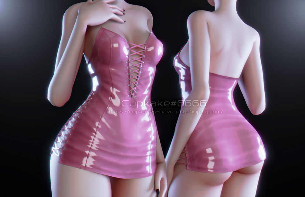 From scratch made sexy laced up latex dress by me. Comes with 1 FBX file, Base Color textures(includes 3 colors! - Black, White, Pink)/Normal map/Roughness map. (Textures are in 2k!)