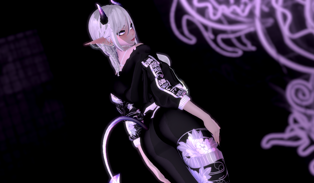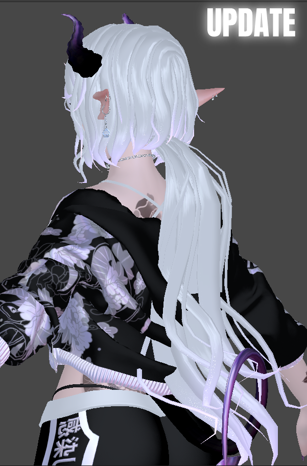 Assets made from scratch by me(Cupkake#6666): Elf ears, Horns, Tail, Jacket, Tank top, Leggings, Pasties, Panties, All Piercings, Chain choker